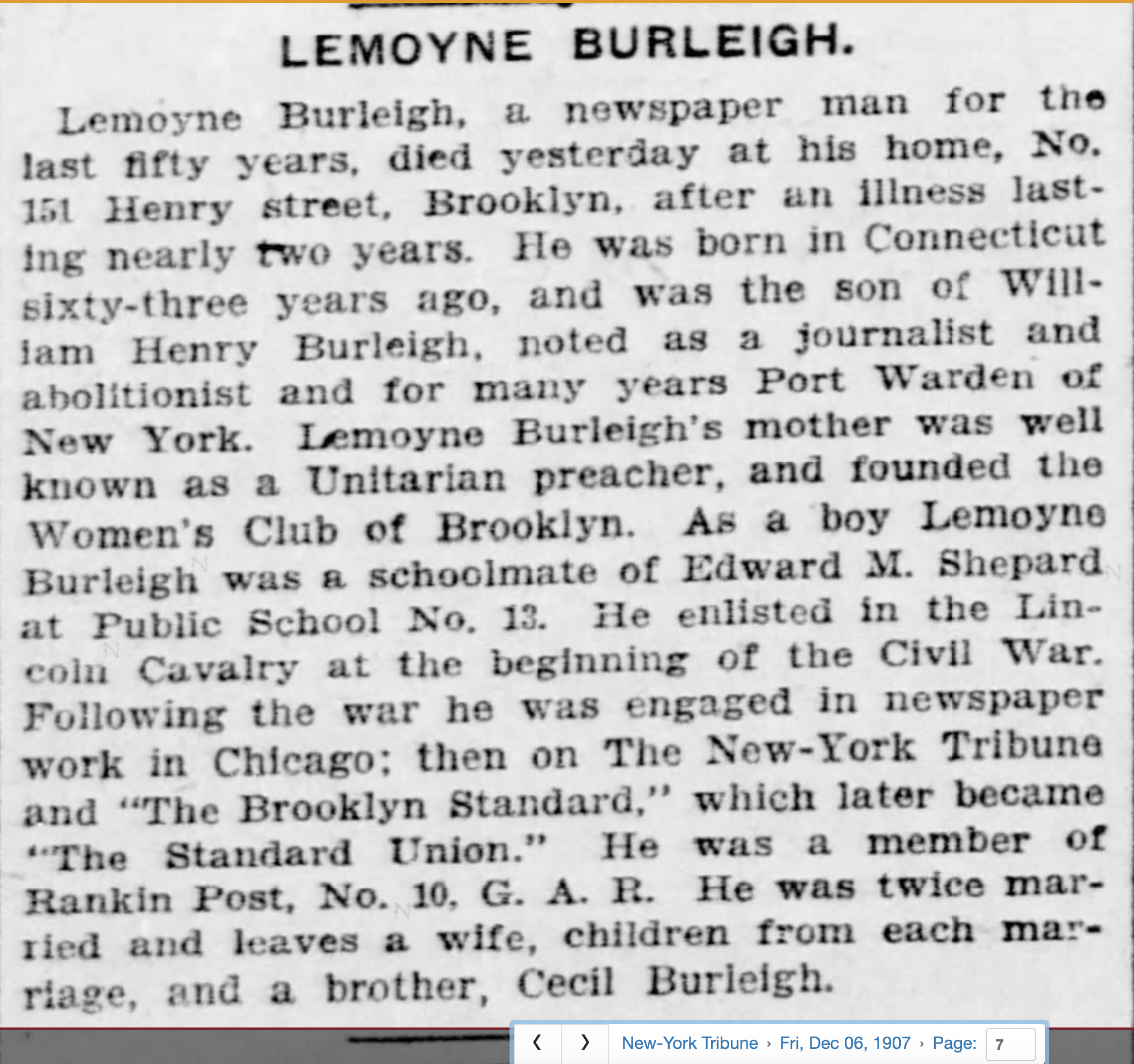 On the staffs of Chicago Evening Post, Brooklyn Eagle, Brooklyn Union, New York World, New York Times, New York Tribune, and New York Witness. - Find-a-Grave