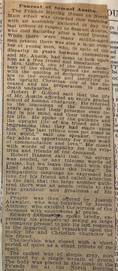 - Samuel Austin (1816-1897) was a long-time teacher at the New England Yearly Meeting Boarding School (now the Moses Brown School), a prominent Quaker school in Providence, Rhode Island