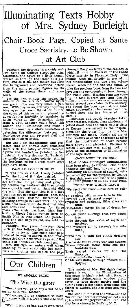 - This poem had never been published until 1933, as it was in the private possession of Sarah Burleigh, Sydney Richmond Burleigh's spouse. See Providence Evening Bulletin article in media section of this entry for more context.