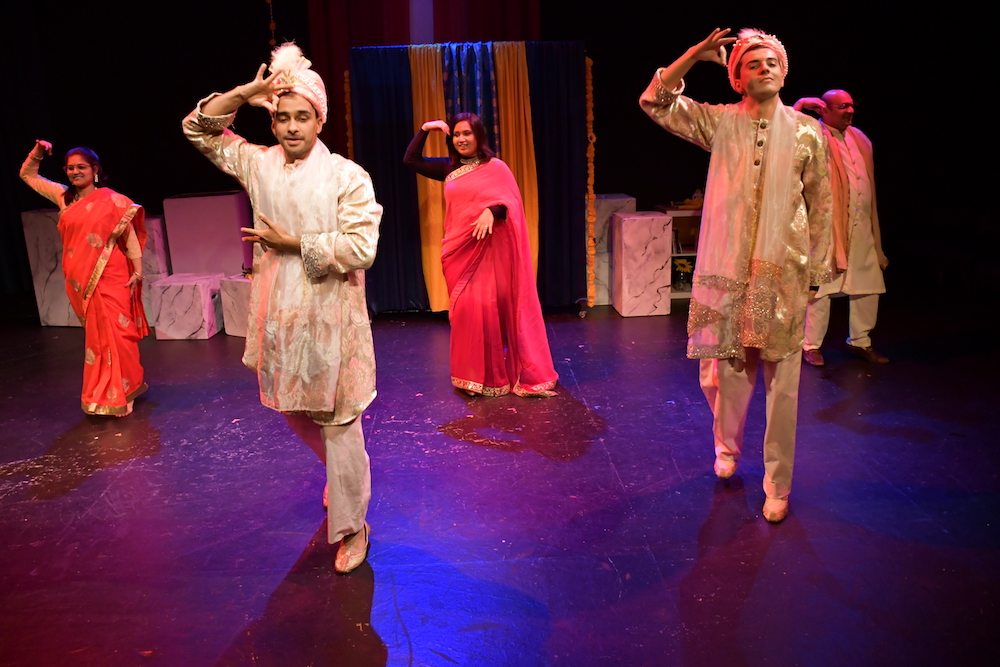This image depicts the wedding dance of Keshav and Naveen in the play, which is a is a romantic comedy about a traditional Indian family in the Bay Area navigating love, identity, and cultural expectations when their son brings home an unexpected partner.