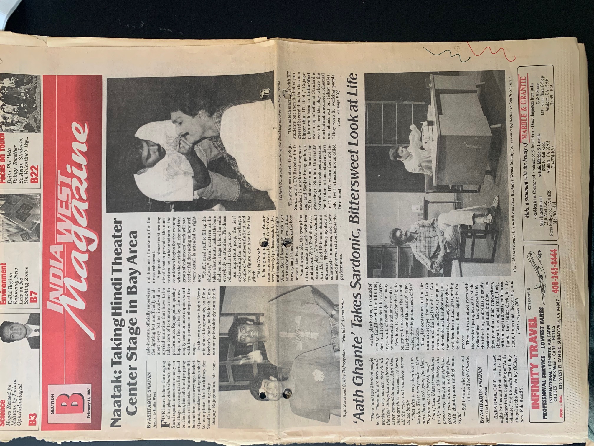 - The first news coverage of Naatak's production, 'Khaamosh! Adalat Jaari Hain (Silence! The Court is in Session)' on February 14, 1997, in the magazine, India West. Vijay Tendulkar is the playwright.