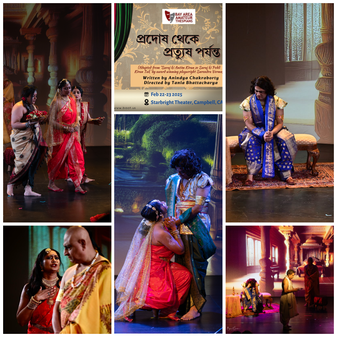 Part of BAAT’s February 2025 Bengali-language double feature, Prodosh Theke Protush Porjonto, written by Anindya Chakraborty and directed by Tania Bhattacharya, is a period drama exploring moral codes and ethical conflict. First developed in 2009 by a predecessor organization, the work was revisited in this production, tracing tensions between duty, desire, and social constraint.