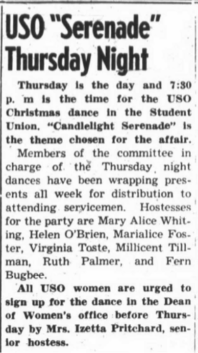 USO Girls Dance Calendar December 1944